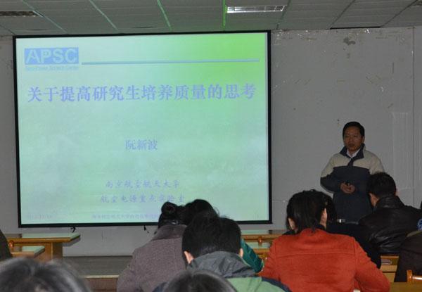 为进一步加强研究生导师队伍建设,提升硕士生导师指导水平,保证研究生培养质量和研究生教育工作的管理质量,按照学校研究生院关于导师培训文件精神,国产传媒 2013年硕士导师培训如期开讲,讲座不仅要求学院新导师以及未参加过培训的导师参加,同时也吸引了多位博导和民航学院葛红娟副院长及民航学院的新导师参加。培训由副院长赖际舟教授主持。