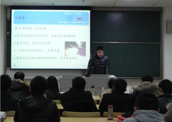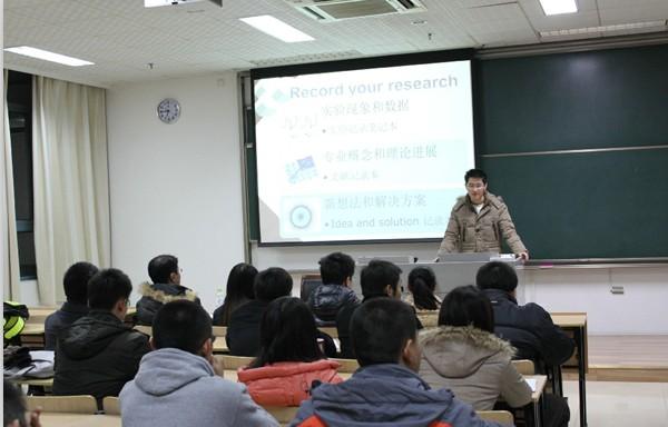 首先为现场同学进行讲座的任仁同学结合自己的科研经历,将自己的经验总结为“三个笔记本”(实验记录本、文献记录本、新想法记录本)以及“三个D”(Discussion、 Debugging 、Discover),他认为科研成功的关键在于记录点滴和抓住想法。紧接着做报告的是李洁同学,李洁同学有着丰富的数学建模经验,她结合自身经历讲解了有关数学建模的一些问题并号召大家一起去了解数学建模的神奇,在培养自己的数学思维、学会创新的同时也锻炼自己自学的能力和解决问题的能力。随后出场是国产传媒 刚刚获得校“天宫杯”研究生创新实验竞赛二等奖的万骏炜同学,他回顾了自己自研究生一年级以来的科研历程,并结合自己参加“天宫杯”研究生创新实验竞赛的感想,告诉大家做科研最重要的就是“相信自己,永不言弃”。接下来报告的是赵阳同学,赵阳同学虽然只是研究生一年级的同学,但已经有过参加国际能源大赛的经历。赵阳同学表示,这次参加国际大赛的经历让她深刻体会到机会来之不易,遇到机会就要牢牢抓住。最后作报告的许德智博士有着丰富的科研经验,他以师兄的身份从如何阅读文献、怎样选题和如何做研究三个方面为现场同学提出了一些建议。许博士的报告内容细致而实用,提出的问题也很有针对性,现场同学都备受启发。