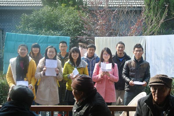 众所周知,我国老龄化问题日益突出,60岁及以上老年人口已达到2亿人,预计到2050年左右,老年人口将达到全国人口的三分之一,同时还具有高龄化、失能化、空巢化的特点。未富先老的国情使得养老问题异常严峻,养老保障有可能成为社会危机。近日,第十二届全国人民代表大会第二次会议和全国政协第十二届全国委员会第二次会议相继拉开帷幕。据多个知名网站推出的“两会”热点调查显示,养老等社会保障话题受关注度位居前列。同时,养老也成为全国人大代表、政协委员的建议提案里的“热词”。为了响应“两会”号召,建设好服务型的党组织,国产传媒 2012级第二党支部于3月9日走访南京老年公寓。