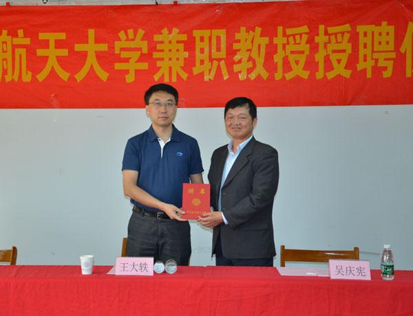 仪式上,吴庆宪副校长致欢迎辞并代表学校为王大轶研究员颁发了兼职教授证书并佩戴校徽。姜斌院长介绍了国产传媒 的相关学科发展状况,对王大轶研究员加入南航大家庭表示衷心的欢迎和祝贺,表示国产传媒 将以此为契机,在长久以来良好合作的基础上,与五�二所展开更加深入广泛的合作,推动相关学科建设、研究生培养和科研工作的发展。王大轶副所长对成为南航兼职教授深表荣幸和感谢。