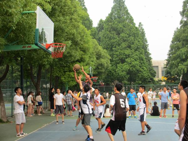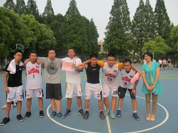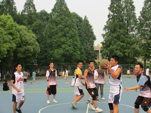 决赛于6月5日下午4时在明故宫校区游泳馆旁篮球场隆重举行。比赛伊始,双方你来我往,互不相让,展现出高超的控球能力和战术水平。博士班通过巧妙配合,由队长刘兵同学以一个中距离跳投打破僵局,为整场比赛首开纪录。与研二4&8班均衡的防守和进攻能力不同,博士班的篮球健儿们,更善于打快攻,以身高优势攻篮。上半场比赛双方势均力敌,比分僵持不下,研二4&8班的王骁同学以一记漂亮的压哨三分球让研二4&8班以5分的优势领先结束上半场。经过短暂的休息,下半场比赛开始,博士班的陈挚同学和王昂同学通过精妙的配合屡屡进攻得手,博士班在打出一波小高潮后将比分迅速扳平并反超。这时研二4&8班的队员们并没有放弃,陈�、王骁、殷骏佳三名队员则凭借扎实的篮球功底和良好的投射技术,帮助本队紧紧咬住比分,比赛进入白热化阶段,观众的情绪都被调动起来。最终,博士班凭借队员之间的默契配合以59:50获得比赛的胜利,博士班的陈挚同学则凭借自己的出色表现荣膺本届赛事的MVP。研二4&8班的同学们虽然输掉了比赛,但他们顽强拼搏和永不言败的篮球精神感染了现场的每一个人。