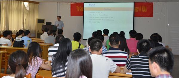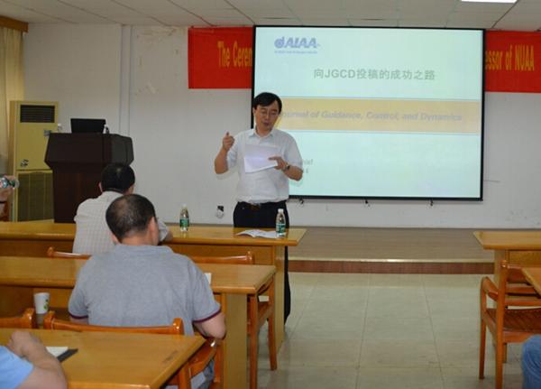 2014年6月6日下午,南航国产传媒 智能楼4楼报告厅,在国产传媒 姜斌院长的主持下,JGCD(The AIAA Journal of Guidance, Control, and Dynamics)第三任主编陆平教授做了“向JGCD投稿的成功之路”的报告。