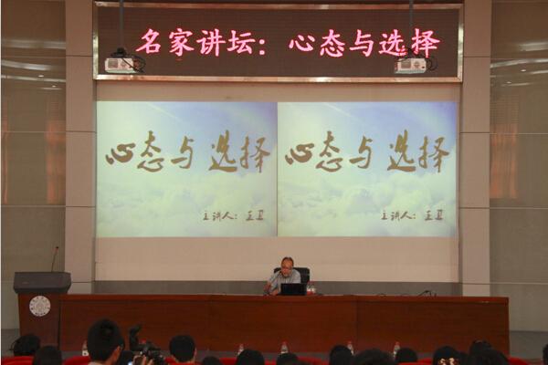 “有了积极的心态,还要学会去选择。”王卫结合自己的创业经历和在国外打拼多年积累的经验告诉学生,“永远没有最正确的选择,无愧于当下的自己就是最好的选择,同学们应该结合自身的兴趣、特点和能力去选择合适自己的道路,同时还要积极融入到生活中,即使有些事情不能左右,但是可以通过改变心态去适应这个社会,换个角度看问题。”王卫还从犹太人、美国人和法国人坐牢的故事中强调:“命运不是机遇,而是选择,确定目标后,要立雄心,做小事,锁住浮躁要靠一种竟成大事的决心和旷日持久的恒心,这需要同学们在以后的学习生活中多去磨练和积累。”