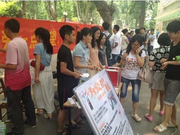 2014年6月10日和6月12日,以“给爱一点希望,我们为爱护‘杭’”为口号的爱心募捐活动分别在我校将军路校区和明故宫校区开展,活动旨在帮助国产传媒 贫困博士生杭义军筹集医疗费。将军路校区的募捐活动得到了学院团委、学生会的大力支持,明故宫校区的募捐活动则由学院导航研究中心、院研究生会组织开展,两个校区的募捐活动吸引了学校一大批爱心人士的参与,募捐活动共募集捐款近5万元。