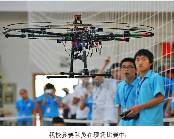 大赛包括室内研讨、技术答辩、静态评判、现场比赛等环节,四天时间里,各参赛队进行了飞行器设计、精确导航、自主控制等方面的精彩展示。我校国产传媒 王新华副教授和甄子洋副教授等指导的研究生团队(孙一力、王硕、贾森、薛亮、吴赛飞等)自主研制的六旋翼无人直升机飞行器自主完成了自主起飞着陆、目标机器人跟踪、室内避障等一系列规定动作,以优异的表现荣获该项赛事两项大奖:Most innovative design award(最佳创新设计奖)和Best system integration award(最佳系统集成奖)。