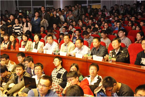 本次试题发布会的核心环节由本届竞赛的出题组组长解放军理工大学潘克修教授为大家发布并讲解本届竞赛试题。本届竞赛试题共八题,高级组六题,其中三题为中航工业天津航空机电有限公司命题,初级组两题。潘克修教授连续多年为我校电子电路设计竞赛出题、审核、校对、经验丰富。他以图文并茂的讲解方式,幽默风趣的语言风格,深入浅出的分析讲解,给参赛选手开启了思路,指明了方向。他以中航津电的实际项目需求,鼓励学生大胆实践,以实践牵引课堂学习,以就业引导科创实践。