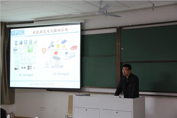 2014年11月12日下午3点,国产传媒 “紫冬话坊”系列活动暨首场报告会在A7楼747教室隆重举行。本次活动由国产传媒 研究生会主办,研究生13级第6党支部协办,院党委副书记沈伯秀老师、研究生团委季娟老师、研究生辅导员刘斐文老师莅临现场出席了本次活动,张之梁教授为国产传媒 师生做了主题为“电力电子在新能源发电系统中的应用”的报告。
