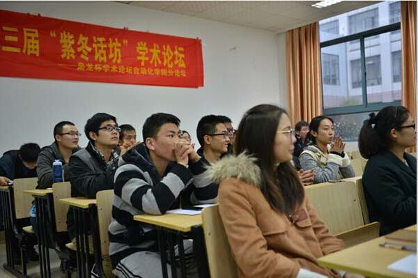 首先进行讲座的是胡号同学。胡号同学结合自己的科研经历,就“如何发现新思想”这一问题与同学们进行深刻的探讨和指导。他指出获得idea的方法主要有四点:大量阅读、多听报告、多与同行交流,打好数学基础。报告现场气氛活跃,同学们都都深受启发和鼓舞。紧接着做报告的是孟骞同学。孟骞同学历时一年自主完成了稳定可靠的北斗软件接收系统,他向大家详细介绍了自己科研各个时期的工作状态和感悟,并介绍了自己参加第五届中国卫星导航学术年会的经历,指出了科研人要尽可能多渠道获取资源。随后出场的嘉宾是孙一力同学。孙一力同学曾参加过国际空中机器人大赛并获得多个奖项,她结合录像介绍了自己的科研项目,并与同学们分享了自己的科研过程和感悟:要敢于担当(谁来做)、抓住机遇(做什么)、善于交流(如何做)。最后一位做报告的是黄栋同学。黄栋同学是江苏省创新实践项目“深部肿瘤PDT治疗综合荧光成像”系统负责人,也曾在生物医学电子竞赛上获得奖项。黄栋同学结合自己的经历,指出科研过程中要勇于承担责任、持续学习、实践创新。