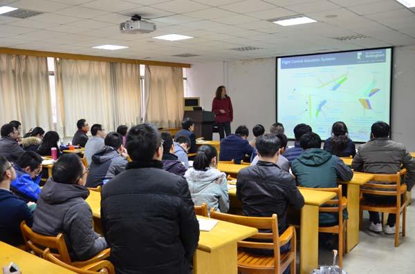 下午,Wheeler教授在智能楼四楼报告厅做了题为“The More Electric Aircraft � an application for Motor Drives”的学术报告,报告会由电气系主任黄文新教授主持,电气系老师和研究生们积极参加了报告会。Wheeler教授介绍了诺丁汉大学电力电子与电力驱动实验室在航空电源领域的研究特色与成果,随后重点介绍了多电飞机的概念以及电机与电力电子技术,并结合直升机电作动器系统和永磁起动发电机系统两个实例讨论了多电飞机电气新技术,其中涉及诺丁汉大学负责的欧盟框架协议Clean Sky JTI项目。报告结束后,师生们和Wheeler教授进行了热烈交流,还讨论了项目合作、青年教师交流和博士生联合培养等问题。Pat Wheeler教授的来访,对于促进我校电气学科和国际航空电气一流研究机构的交流合作、拓宽师生的国际学术视野有重要意义。
