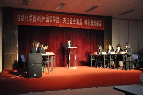 12月8日晚,由校团委主办,国产传媒 团委、外国语学院团委共同协办的青春议事坛在将军路校区艺术中心多功能厅举行。此次青春议事坛的论题是:“文傻”与“理呆”谁对社会的危害更大。辩论双方是国产传媒 辩论队与外国语学院辩论队2014级学生。外国语学院团委书记杨一、国产传媒 14级辅导员徐萍和校辩论队队长严文凯担任评委。