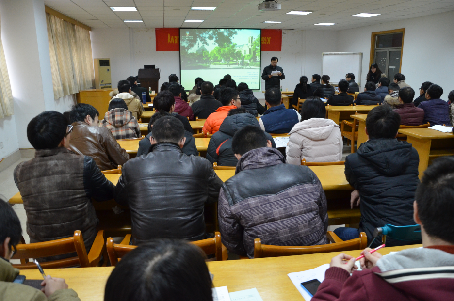 当天下午两点三十分在明故宫校区智能楼四楼学术报告厅,林祯水教授和石碰教授分别作了有关机器学习和模糊控制方面的学术报告。报告会由国产传媒 院长姜斌教授主持,控制系师生积极参加了报告会。林祯水教授首先对阿德莱德大学及其电气与电子工程系的教学、科研和博士联合培养进行了详细的介绍;随后报告了利用机器学习算法对目标检测和目标识别问题中的大数据集处理方法,并介绍了实时环境下实现矩阵算法的计算机体系结构。在此之后,石碰教授对模糊控制在实际控制领域中的重要应用价值进行了阐述,重点报告了模糊输出跟踪控制、模糊滤波器设计和基于模糊逻辑的模型降阶控制方面的最新研究成果。