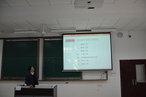 接着,院长姜斌同志代表学院做《国产传媒 2014年下半年工作报告和2015年上半年工作部署》,报告中重点对学院的党建、教学、科研、师资、学科建设、人才培养、学生工作等方面进行全面总结和回顾。报告指出,按照学校党委部署,围绕学校中心工作,学院在学生培养、科研工作建设、学院文化建设等方面取得了新的突破和发展。姜院长号召学院全体乘势而上,继续保持2014年目标管理工作取得的优异成绩基础上,以事不避难,勇于担当的精神全力推动学院的综合改革,坚定信心,科学发展,全面推进学院各项工作再上新台阶。