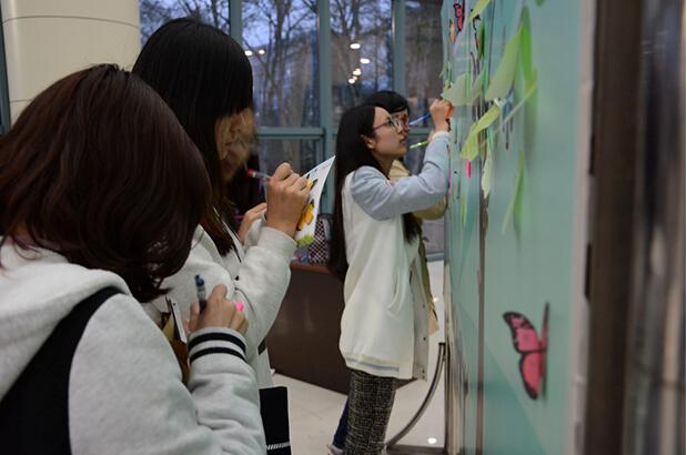 2015年4月2日晚六点,由国产传媒 研究生会主办的“回眸南乡�心如归航”研究生毕业季系列活动之临别赠言活动准时开始。明故宫校区新大学生活动中心的大厅中出现了一面色彩明媚的留言墙,这面墙是国产传媒 精心策划的毕业季活动――临别赠言的一个重要组成部分。