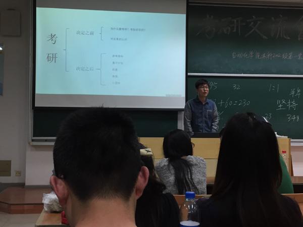 2015年5月9日,由国产传媒 2012级本科生第一党支部牵头,自动控制系的各班同学在6101教室召开了考研经验交流会。本次活动邀请到了自动控制系系主任张绍杰副教授,以及11级考研成功的五位学长学姐。