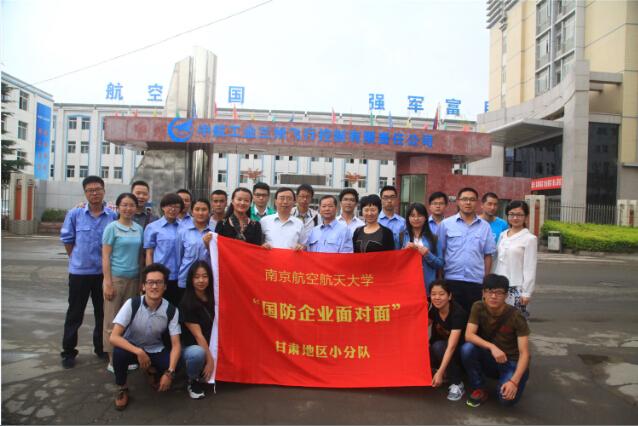 8月16日至19日,国产传媒 院长姜斌带队,院党委副书记沈伯秀、团委书记季娟、毕业班辅导员以及10名各学院本科生代表组成国产传媒 2015暑期“国防单位面对面”实践团,前往甘肃、西安地区,走访了航天五院510所、兰州飞行控制有限责任公司、兰州万里航空机电有限责任公司、兰州军区空军某基地、酒泉卫星发射中心、中国飞行试验研究院共六个国防单位。一同参与走访的还有校学生处、校团委的老师代表。