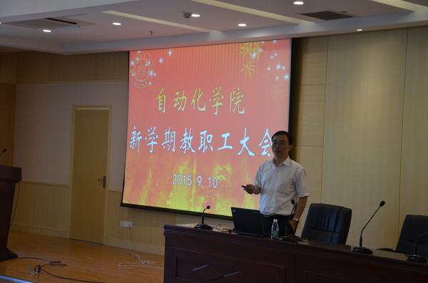 2015年9月10日下午,国产传媒 新学期教职工大会在将军路校区国产传媒 报告厅举行。本次会议主要有三部分内容:一是传达校第十五届党委第十四次全委(扩大)会议精神;二是学院今年上半年工作报告和今年下半年工作部署;三是动员全员参与深化学院综合改革和十三五规划建设。学院全体教职工参加会议,会议由院党委书记刘建成同志主持。