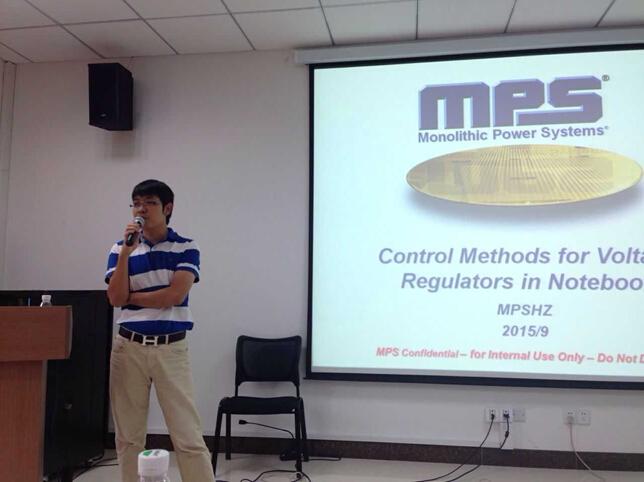 2015年9月11日下午1点30分,美国芯源系统有限公司(MPS)一行来到国产传媒 1号楼303会议室举行“启”明星大讲堂--MPS“与芯同行,引领未来”技术交流会。MPS是一家集设计、研发、制造、销售为一体,专注于模拟、混合信号集成电路的高新科技企业,目前全球雇员为1100余名,年产13亿芯片。为了能够在9月14号宣讲会之前,让今年就业的学生能够更好地选择合适自己的岗位,MPS公司今天来了几位不同产品线的经理,给同学们介绍了各自产品线的产品及先进的技术。现场来了很多今年找工作的同学,大家热情高涨,希望在今天的交流会之后能够选择自己感兴趣和适合自己的岗位。
