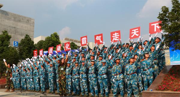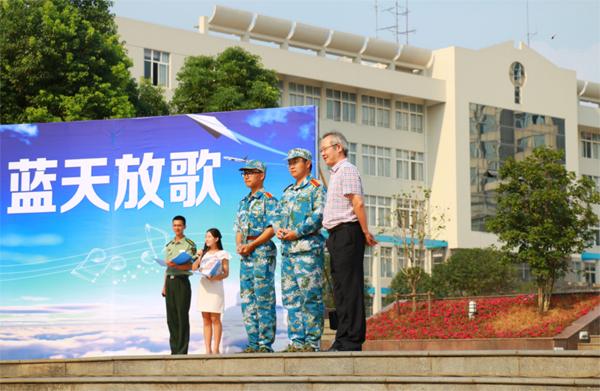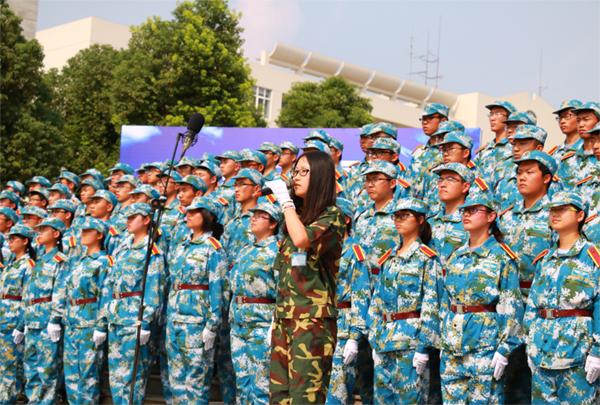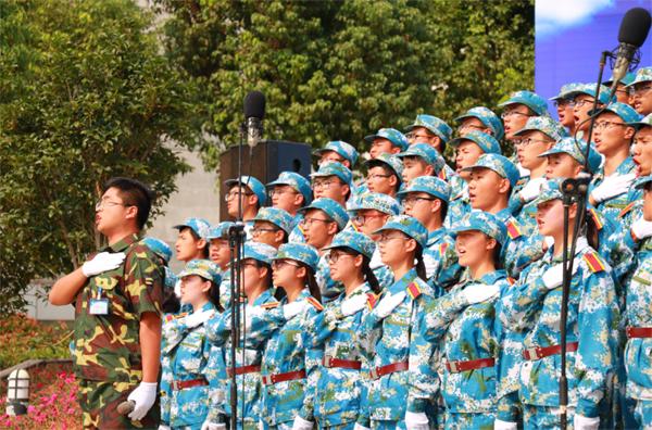 9月18日下午,将军路校区国旗广场上,国产传媒 100名大一新生以一曲《当那一天来临》荣获“蓝天放歌”2015级新生军训赛歌会一等奖。