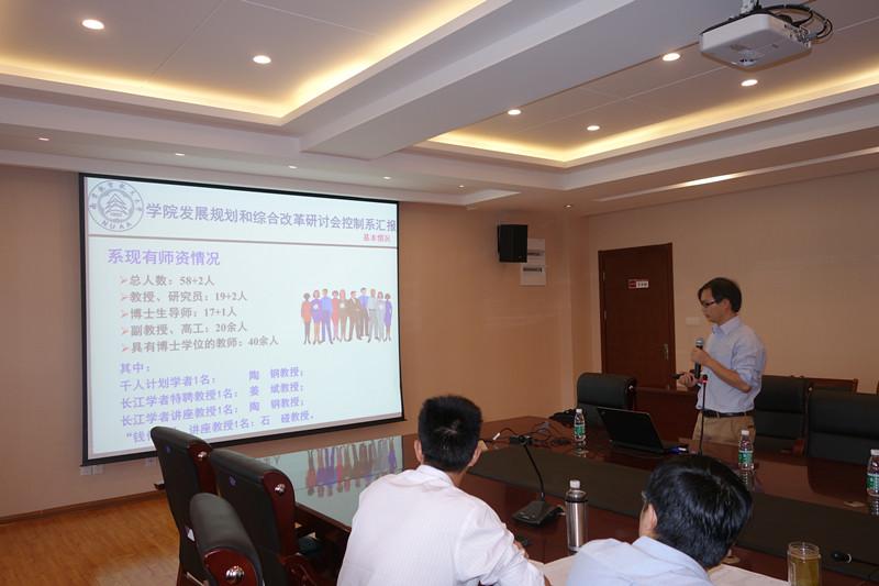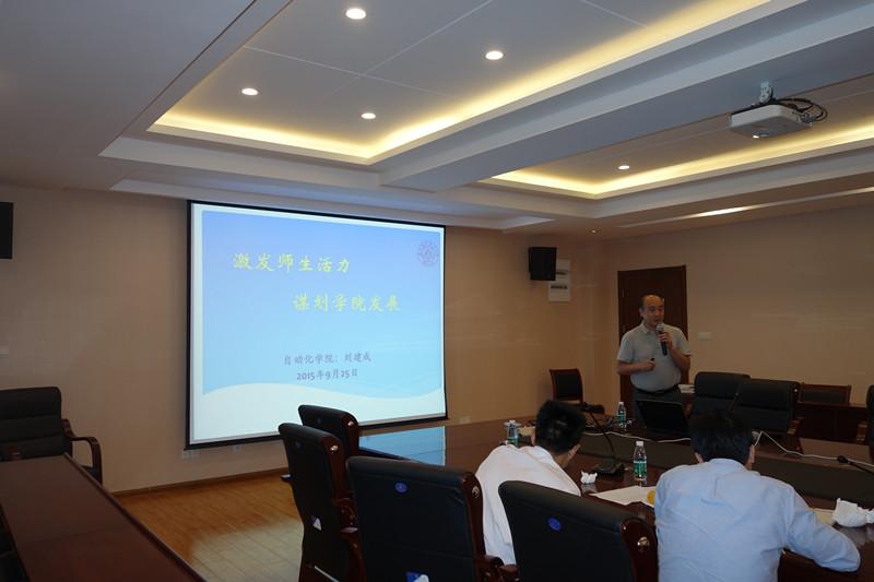 25日下午,研讨会进行第二部分内容,学院领导班子成员依次进行汇报。院党委书记刘建成同志介绍了学院制度建设的规划,从顶层设计强化制度导向,深化综合改革,力争在“十三五”期间通过建立完善的激励机制激活全院师生活力、共谋学院发展;院长姜斌同志介绍了学院综合改革的发展思路和规划,提出了学院“十三五”期间的发展目标和要求,并重点分析了学院现有人才工程和学科建设的现状、困难以及发展思路;副书记沈伯秀同志从学生绩点、就业等各类数据图表入手,全面剖析学生的思想学习生活状态,强调要继续突出科创特色培养高水平专业人才;副院长赖际舟同志深入分析指出当前研究生招生形势,进一步提出学院研究生培养的思路和举措;副院长王晓琳同志结合专业认证工作突出强调本科基础教学的重要性及发展方向;院长助理宋晓峰、张之梁同志也结合业务工作提出了深化学院综合改革的思路和建议。