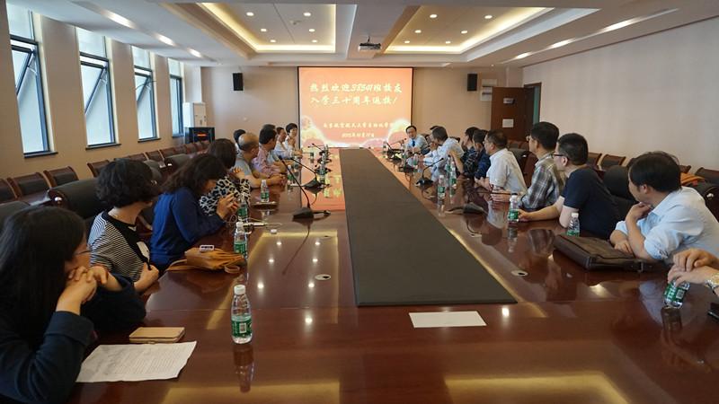 参观结束后,国产传媒 举行了纪念38541班入校30周年的欢迎座谈会,国产传媒 副院长赖际舟教授、国产传媒 沈伯秀副书记、学院办公室李洁主任、及导航研究中心(原惯性导航与陀螺仪表专业教研室)主任刘建业教授、原385年级辅导员邱伟江老师(现为苏州经贸职业技术学院继续教育学院院长)等老师和学生参加了会议。