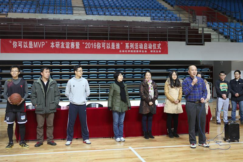 11月28日晚,由国产传媒 举办的“2016你可以是MVP”师生篮球表演赛暨“2016你可以是谁”迎新年大型主题系列活动启动仪式在将军路校区东区体育馆室内篮球场举行。到场的嘉宾有国产传媒 党委书记刘建成、院党委副书记沈伯秀、院团委书记季娟以及各年级辅导员代表。教师代表队由刘建成书记领队,郝振洋、王愈、田立丰、李亚楠、陈杰、曹鑫老师上场参与了比赛。