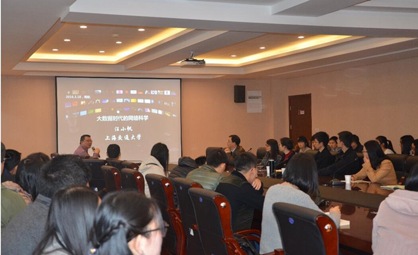 3月18日上午,上海交通大学教授汪小帆应邀在江宁校区国产传媒 4楼会议室做题为“大数据时代的网络科学”的学术报告。会议由国产传媒 院长姜斌教授主持,国产传媒 部分师生参加了报告会。 汪小帆教授首先与在座师生分享了学生时代的趣事,激励大家对科学研究的兴趣。然后,汪教授结合现实生活中遇到的问题,用网络 科学的眼光抽象问题,然后提出解决问题的方案。结合实际案例,汪教授讲解了网络技术与控制技术的融合,解决实时拍卖过程的一些技术问题。汪小帆教授做科研的态度以及对科学问题的兴趣,给在场师生留下很深的印象。