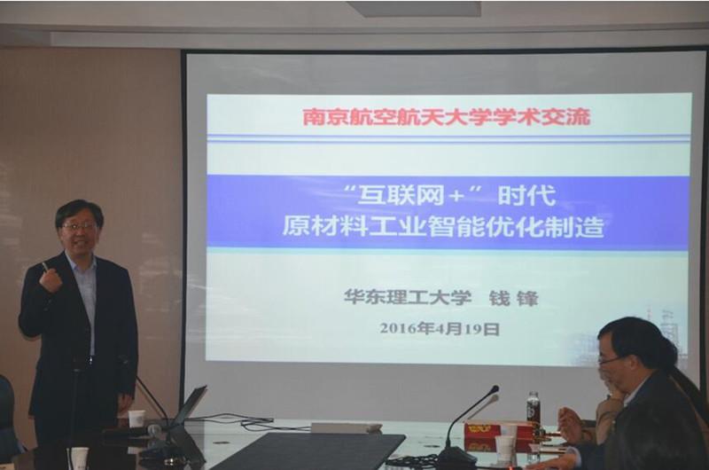 4月19日上午,中国工程院院士、华东理工大学副校长钱锋教授应邀访问南航国产传媒 ,做题为“‘互联网+’时代原材料工业智能优化制造”的南航“问天”科学讲坛第90场学术报告。报告会由国产传媒 院长姜斌教授主持,国产传媒 近百名师生聆听了报告会。