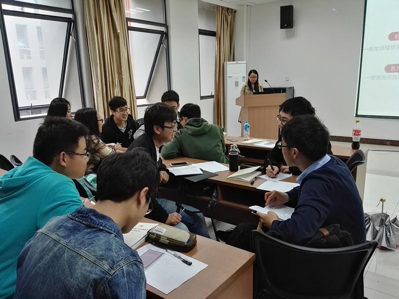 分享会的最重要环节落实到“一做”上,同学们分组讨论,就“如何做一个合格的大学生党员”展开了讨论,并按小组分享讨论结果:从做诚实守信的典范到成为积极的实践者,从积极参与“1+1”帮助同学到成为引领同学们的榜样,也谈及这学期学习、生活和工作中的疑惑与困难以及如何克服……