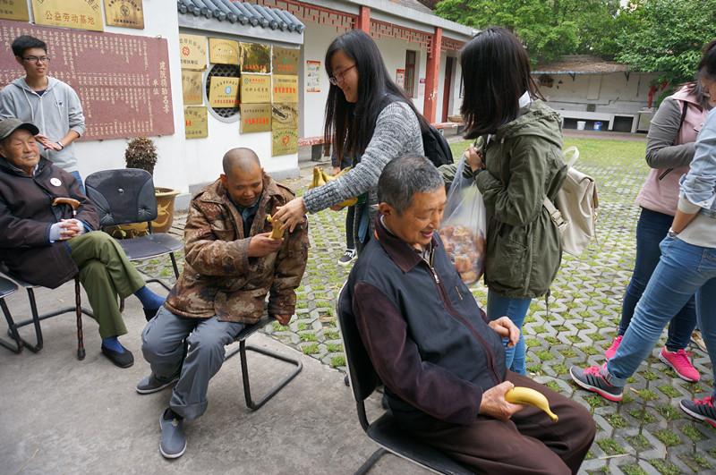 2016年4月24日下午,国产传媒 本科2013级第二党支部与国产传媒 0313204班联合组织的志愿服务团队来到了南京市江宁区东山敬老院,18位积极分子积极踊跃地参与到这次活动中来。 下午2点,同学们带着自己的心意到达东山敬老院,院长和老人们为我们的到来感到非常高兴。大家分发完水果、蛋糕等慰问品之后,献上吉他弹唱《天路》、群体合唱《相亲相爱的一家人》等歌曲。同学们都把老人们当成是自己的家人,表演过后,三三两两分散开来,聆听爷爷奶奶们讲他们的故事和游历的所见所闻。一个下午的时间远远不够,临走时,他们相约,下一次还要去爷爷奶奶的宿舍坐坐、聊聊。