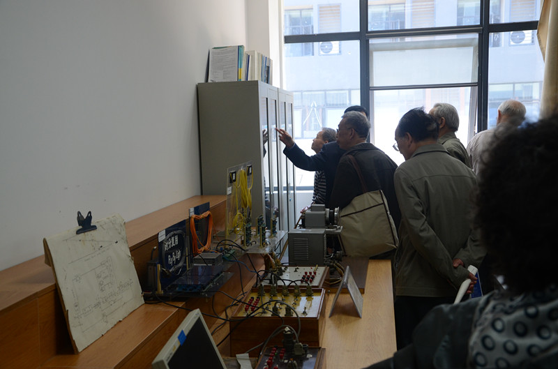 五十年后再次回到焕然一新的母校,老校友们心情激动,喜悦之情溢于言表。校友代表陈传德老师介绍了此次聚会的筹备和学院接待的准备情况,感谢学院给予的大力支持和热情接待。他们回忆了美好的青春岁月,展示了珍贵的大学老照片影集,和大家一同再一次走进校园,走进年轻的时光,校友王廷弼将亲手书写的书法 “桃李峥嵘,母校春晖”四幅墨宝赠送给学院,以表达老校友们对学院的感激之情和美好祝愿。聚会庆典结束后,老校友一行人在国产传媒 一号楼前与学院领导各系主任留下了珍贵的合影。学院各系精心安排了有经验的老师,带领老校友们参观了实验室,并与部分老师和学生进行交流,实地感受到了学院最新的科研动向和先进的实验设备。