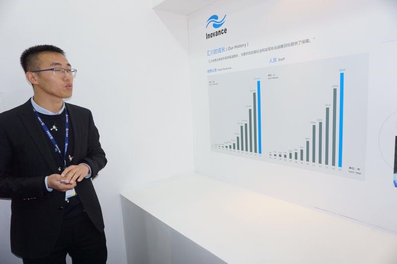 抵达汇川后,客户接待工程师孙瑜带领师生们来到了大厅,简单讲解了两台展示用机械臂。随后,大家来到二楼展厅。首先映入眼帘的是汇川的国产传媒-国产传媒官方最新全集发布页宣传墙。孙瑜热情洋溢地向师生们介绍了汇川的国产传媒-国产传媒官方最新全集发布页,从企业的愿景谈到企业的成长奋斗史。接着,工作人员带领师生们来到了产品展厅。展厅内陈列了一些汇川最新的科技产品,从变频器到伺服电机再到一体化电梯等。对于这些复杂先进的科技产品的原理和应用,工作人员都做出了详细的讲解。