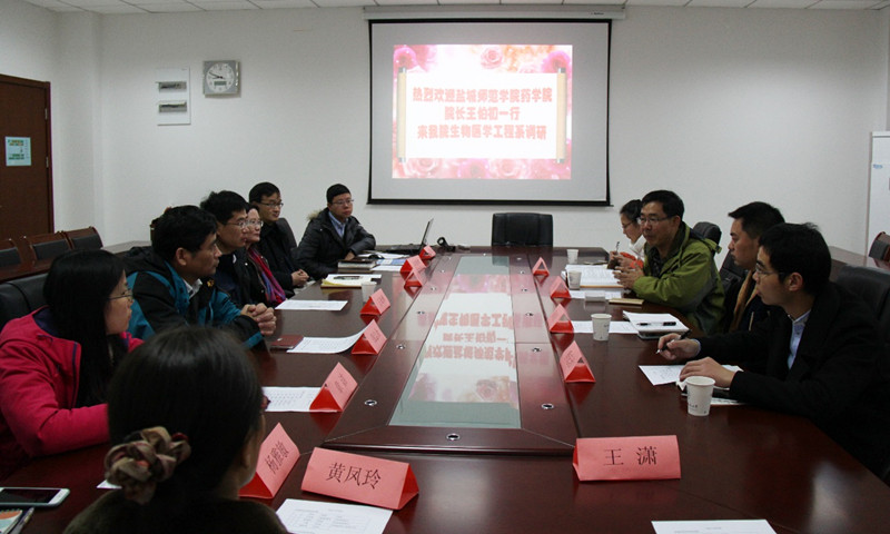 2016年12月13日上午,盐城师范学院药学院院长王伯初教授、副院长耿荣庆教授、生物医学工程系主任丁惠以及季庆治老师一行四人来国产传媒 生物医学工程系进行调研与交流。