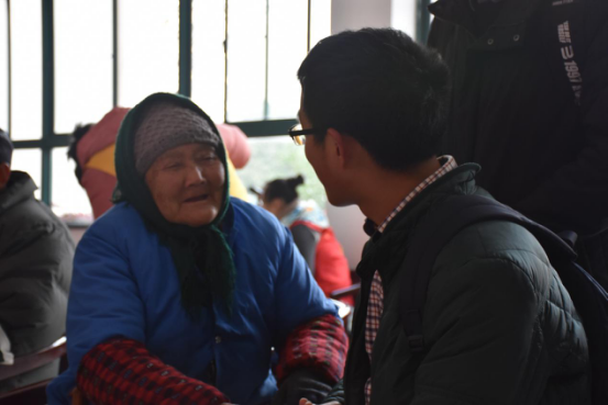 尽管老人们的家乡口音很难听懂,但每位同学仍然用他们的耐心半理解半猜测,努力和老人交流。虽然素不相识,但看到老人家的笑脸大家内心很是温暖。