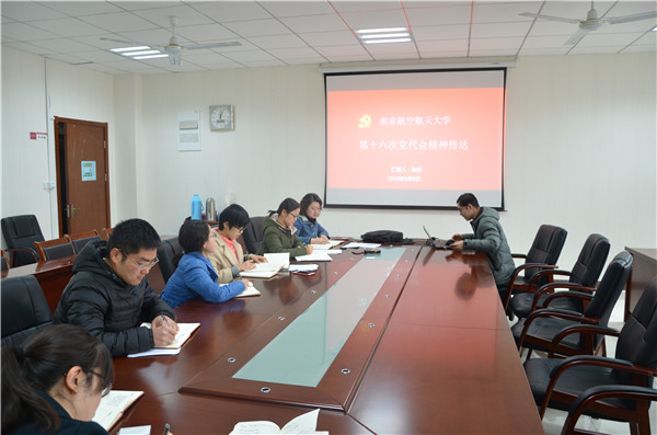 会议最后,学院党委副书记张跃带领大家学习了学校十六次党代会的会议精神。十六次党代会总结了我校过去六年的发展历程和成果,明确了学校未来奋斗的目标。辉煌的成绩代表过去,未来需要每一个南航人不忘初心、砥砺奋进,付出辛勤的努力,南航三步走的战略目标就一定会实现。学校十六次党代会的精神激励着每一位党员,为建设特色鲜明的世界一流大学,我们将更大的发挥学院机关党支部的带头引领作用,为凝聚各方力量促进学院的发展而建言献策,牢记习主席“撸起袖子加油干”的嘱托,将学院机关的各项工作做实做细,服务全院师生,服务学院发展。国产传媒