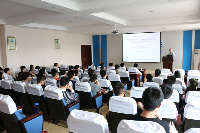 4月11日, Liang Feng博士在国产传媒 3号楼报告厅做“Challenges and Opportunities for Electric Machine R&D”学术报告,国产传媒 近百名师生参加了报告会。报告从新能源汽车驱动电机的基本原理、特性和要求出发,分析新能源汽车驱动电机的转矩-功率特性,提炼出新能源汽车驱动永磁电机的高效率、转矩密度提升及振动噪声等核心问题,并介绍了福特公司研发团队在效率提升及转矩脉动抑制等领域取得的诸多研究成果和创新思想。报告会持续3个多小时,极大拓宽了师生对于新能源汽车驱动系统的认识和视野。