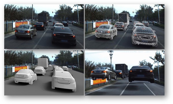 现有的仿真系统在呈现真实的交通流、驾驶员与行人的互动等场景中仍有很多不足,与真实的环境存在较大的差异。在研究AADS的过程中,最大的难题同样是如何将道路的真实情况进行仿真合成。李伟及研究团队用视频和照片来模拟真实世界的道路和动作,这种数据驱动的方法提供了一个更加现实和有益的交通仿真模型。“我们这个系统其实就是在弥补与现实环境的差异,目前我们的研究应该是最接近真实环境的。”李伟向记者解释到,“目前学术界和工业界尚未有特别针对自动驾驶的街景合成技术,而我们的研究则在这一点上完成了突破。”