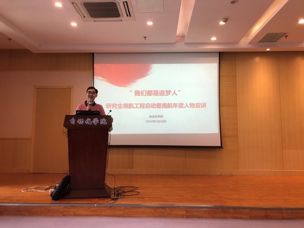 紧接着,副院长陈谋代表南航年度人物进行宣讲,研究生领航工程拉开帷幕。陈院长以近期几个热点事件为例,提出了多读书才能“吵赢架”的观点,引出了多读书的必要性。随后,陈院长以求学、从教和科研的亲身经历为素材,引用大量古今中外的诗词名句,旁征博引,深入浅出的讲解了自己对学习、科研的理解,并希望同学们拥有甘坐冷板凳的坚守、攀登科学高峰的拼搏、对国家、社会的无私奉献精神,引起台下同学们阵阵掌声。