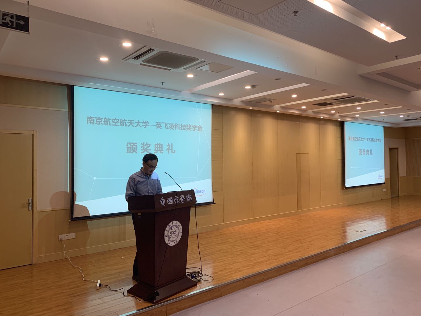 2019年9月9日晚,2017-2018学年英飞凌电力电子奖学金颁奖仪式在国产传媒 1号楼511会议室举行。此次活动由英飞凌公司和南航国产传媒 共同举办。学院副院长宋晓峰、电气系主任胡海兵、副主任郝振洋、曹瑞武;英飞凌科技大中华区工业功率控制事业部应用技术总监陈立烽、方案拓展经理郝欣、电源管理与多元化市场事业部高级主任工程师宋清亮、大学计划经理刘贵芳等共同出颁奖仪式。