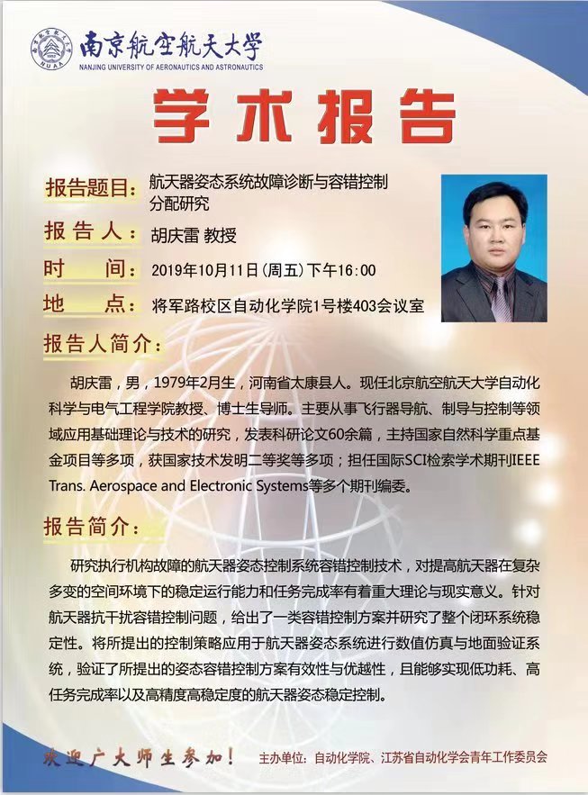 学术报告:航天器姿态系统故障诊断与容错控制分配研究