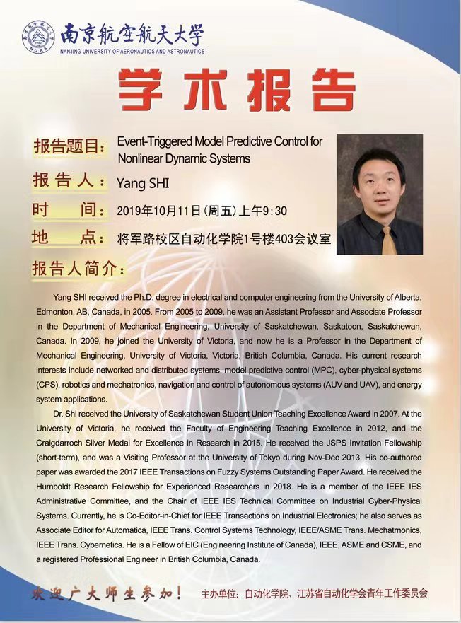学术报告:Event-Triggered Model Predictive Control for Nonlinear Dynamic Systems