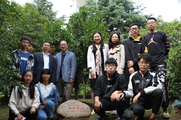 报告会后,管晓宏院士为在我校“院士林”亲手种植的一株桂花进行了培土,并和大家合影留念。