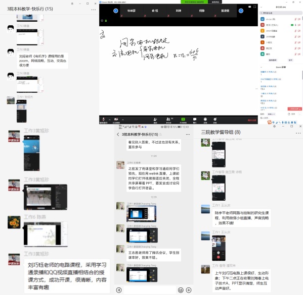 任课老师们课后积极进行经验分享和交流,副院长王晓琳也及时率先分享了自己的授课经验。刘巧珏老师课后第一时间分享了QQ群直播与学习通相结合的线上教学实施过程,王晓琳副院长及时分享了在课堂中采用腾讯文档在线答题的方式和效果,以及在welink直播授课的效果呈现,互动过程很有效。学院教学办及时将有关反馈转发所有任课老师,互相学习提高,确保教学的顺利开展。