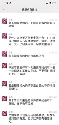 “怀念在学校的日子”、“希望早点开学”,我们看到了同学们急切返校的心情,也看到了大家希望疫情早日结束的心情。“希望大家都能平安度过此次疫情”、“特殊时期,克服重重困难,多交流多讨论,共同进步”,老师们的叮嘱寄予了深深的期望,同学们虽然还不能回校,但也要把在家的时间计划好,利用网络渠道,完成好自己的学习和毕设,不能因为疫情而耽误了学业,在家养成良好的作息习惯,注意锻炼身体增强抵抗力,确保春暖花开之时能健康按时返校。