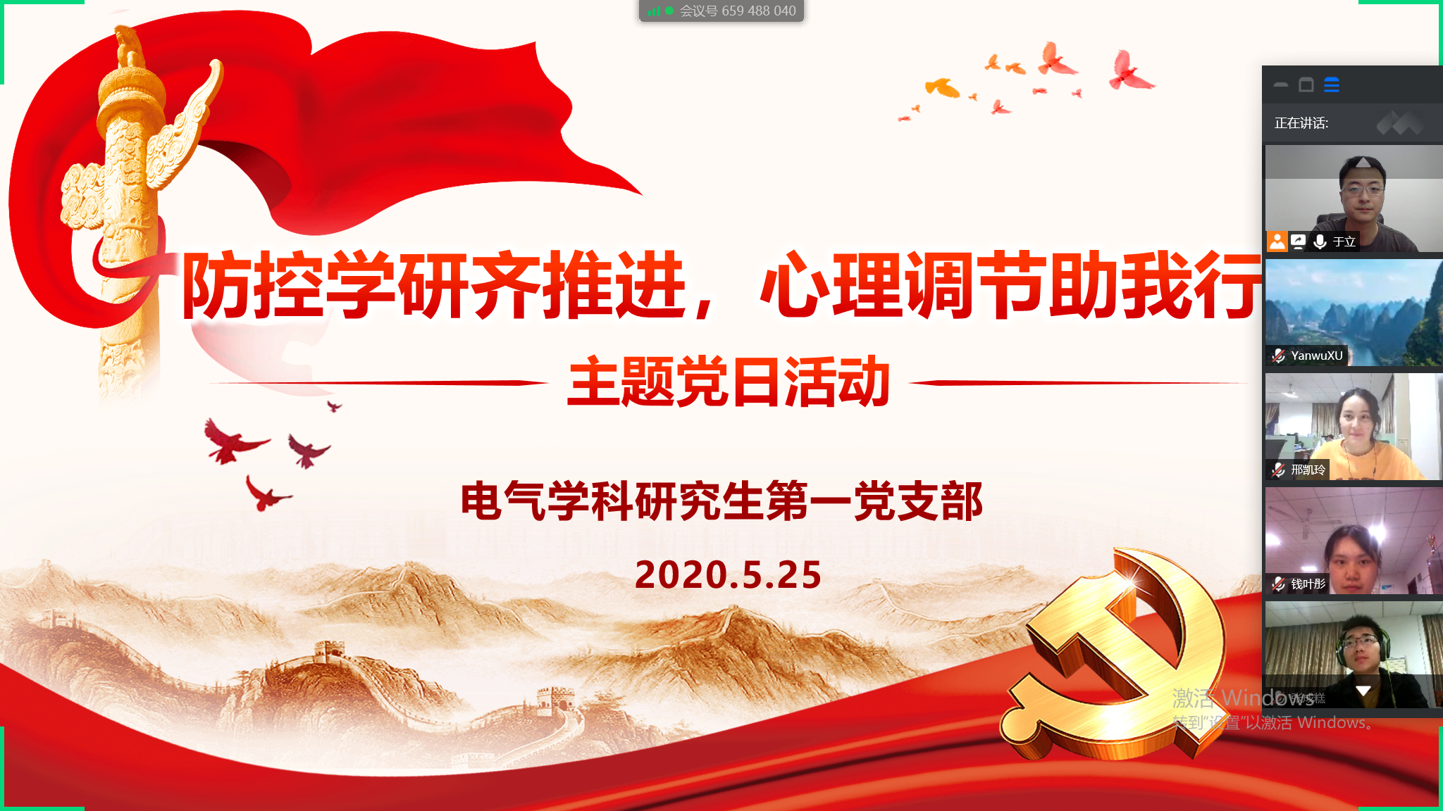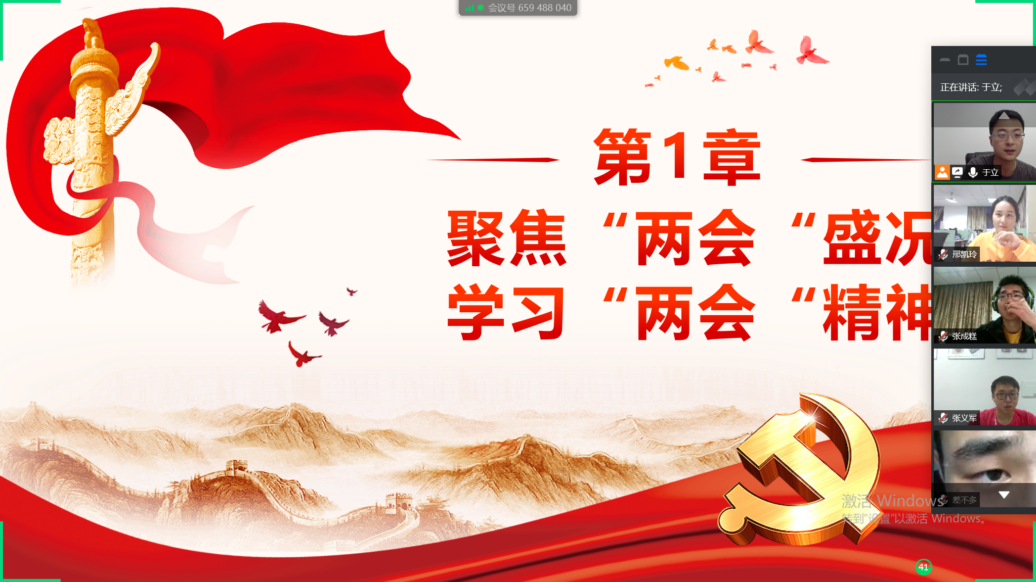 全国两会的顺利召开,展示了党中央、国务院统筹抓好疫情防控和经济社会发展的坚强决心,极大鼓舞了全国上下团结一致、共克时艰的信心和勇气。国产传媒 电气学科研究生第一党支部全体师生热切关注全国两会的召开,结合研究生自身疫情防控与研学生活中的心理调控方式方法,5月25日,第一党支部开展了一场以“防控学研齐推进,心理调节助我行”为主题的线上党日活动。支部党员、发展对象、积极分子共计28人参加了本次活动。