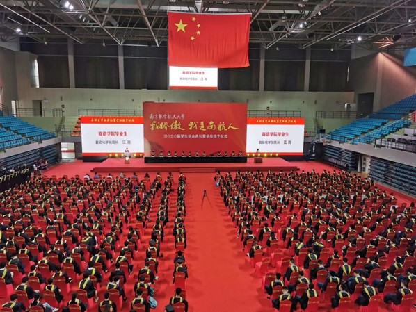 最后,进行了隆重的学位授予仪式,校领导、学院领导、院长助理和各系主任为全体毕业生颁发学位证书并拨正流苏。