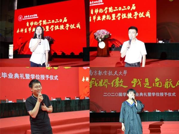 毕业生代表、保研本校的206班张绮瑶代表国产传媒 全体2020届毕业生发言。她回顾了在三院学习的四年时光和成长历程,代表全体毕业生表示一定为祖国的航空航天事业贡献出南航自动化人的一份力!