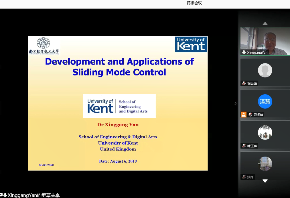 86日下午,英国肯特大学工程技术与数码学院严星刚副教授应我校国际合作处和自动化学院的邀请,通过腾讯会议作了题为“Development and Applications of Sliding Mode Control的线上学术报告,报告由副校长姜斌教授主持,国产传媒 冒泽慧、张柯、张绍杰、马亚杰等师生在线参加会议。参会师生对严星刚副教授的交流分享表示热烈欢迎。