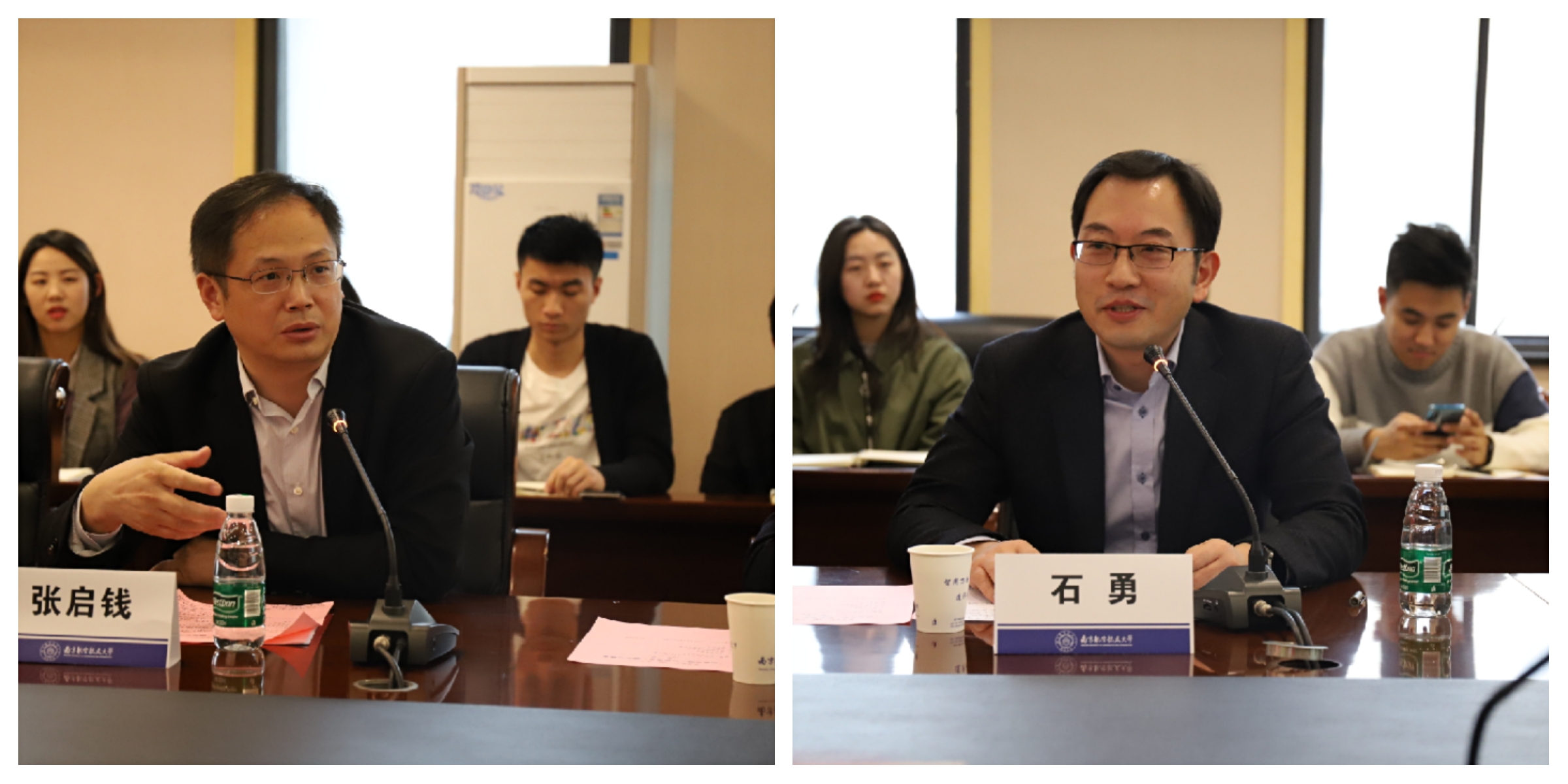 针对学生代表提出的期望和需求,研工部部长张启钱和将军路校区党工委书记石勇分别代表两个对接部门进行了回应。张启钱部长表示师生对接是落实党中央和工信部要求的重要举措,全体联系教师会按照校党委的要求,把工作做到位,切实做好学生的学业指导和身心健康维护等工作。石勇书记结合自己在国产传媒 学习生活和工作的经历,向同学们讲述了好老师对学生成长成才的重要作用,表示将以学院优秀教师为榜样,进一步深入联系学生、服务学生和指导学生,把工作做在学生的心坎上。