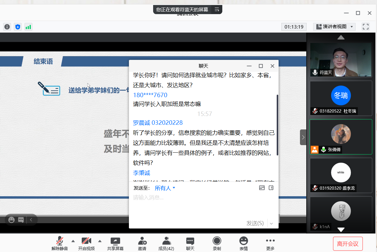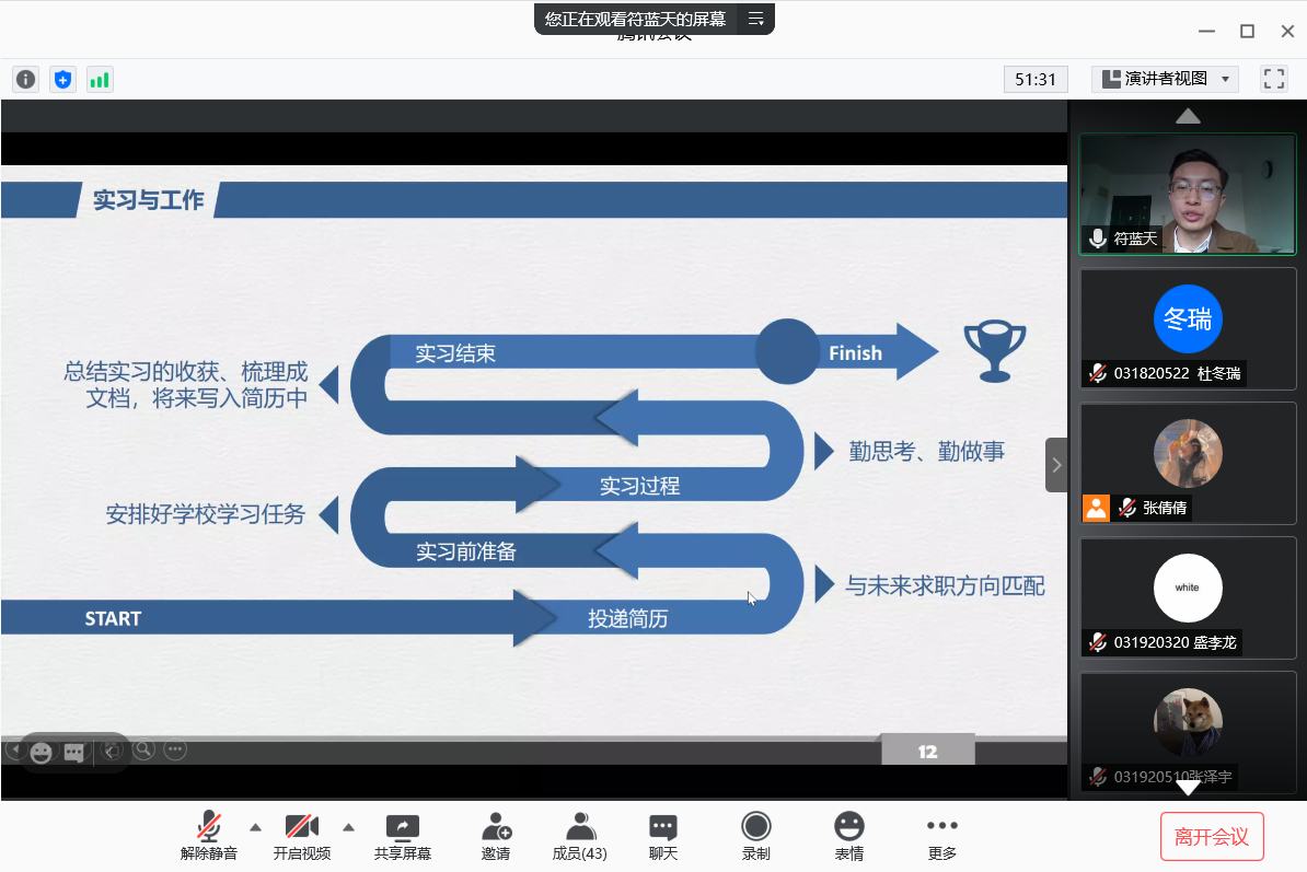 这次线上职业生涯规划沙龙给同学们介绍了职业生涯规划的思路,带领同学们了解了职场环境和要求,让同学们在以后的学习中有了更加明确的目标与方向。