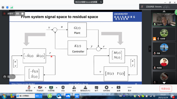 3月24日下午,德国University of Duisburg-Essen大学 Steven X. Ding 教授应我校国际合作处和国产传媒 邀请,依托我校“民航运输安全”学科创新平台,作了题为“A unified framework of control and detection, and its application to fault detection and performance degradation recovery in feedback control systems”的学术报告。报告由我校副校长姜斌教授主持,学院师生在线参加会议。